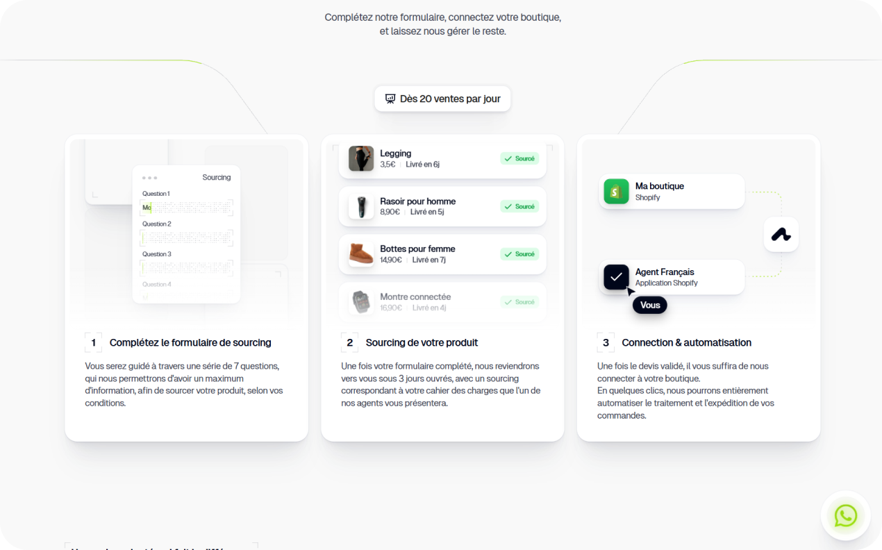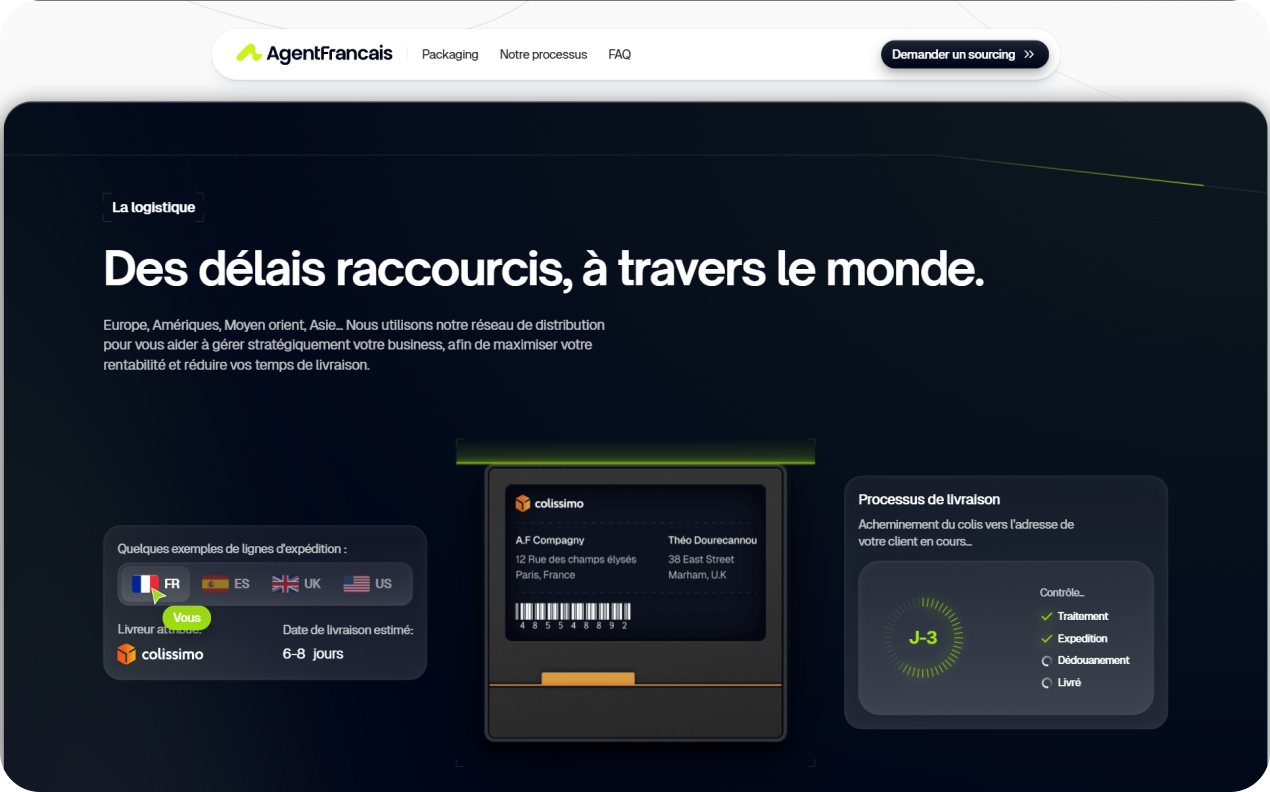 Agent Français est un agent logistique avec warehouses en Chine dédié aux e-commerçants français — sourcing, branding, automatisation, mise en conformité, les avantages d'un agent chinois avec une équipe francophone.