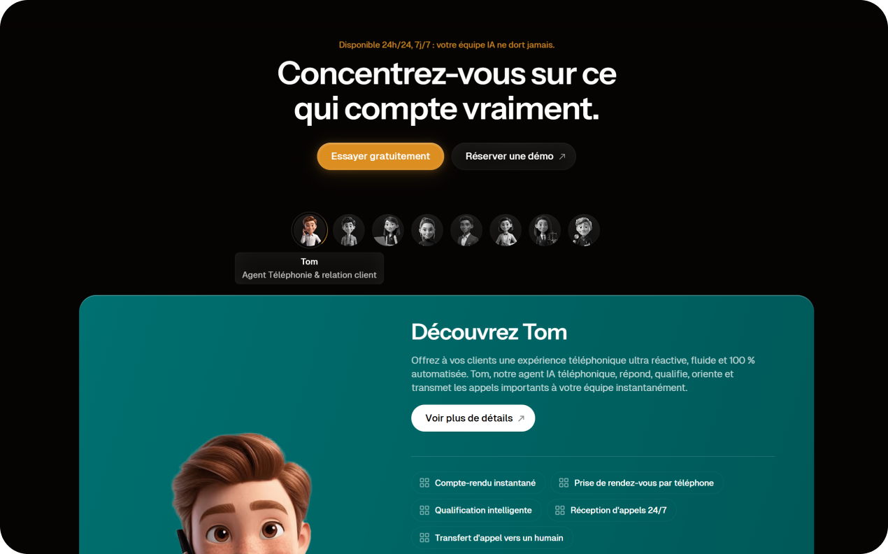 Limova est une plateforme d'agents IA qui accompagne les entreprises sur de multiples domaines (téléphonies, SEO, automatisations...).