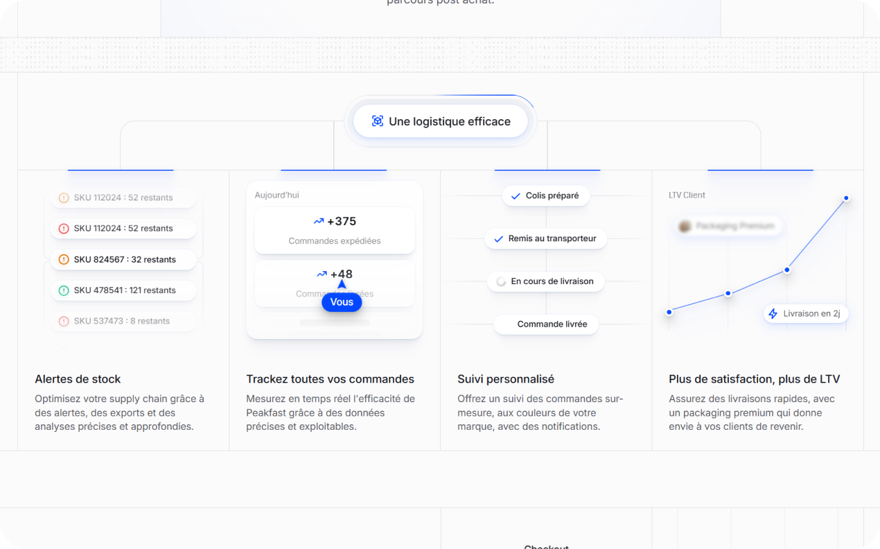 Peakfast est une warehouse parisienne qui accompagne les e-commerçants sur toute la partie logistique : réduction des coûts, optimisation de la chaîne, accélération des livraisons.