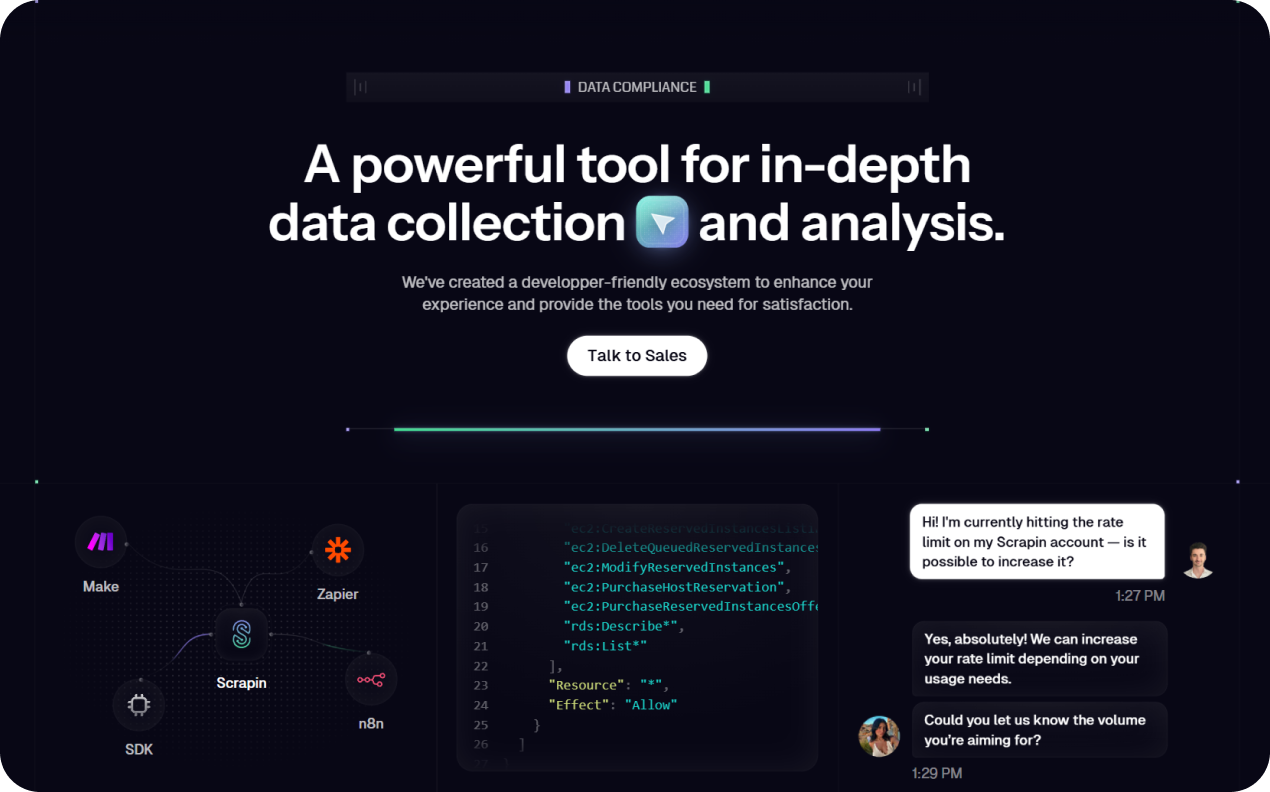 Scrapin est un outil de scraping de données spécialisé LLM qui récupère des informations personnes et entreprises en masse — un produit qui vise des clients précis, pas de la conversion de masse.